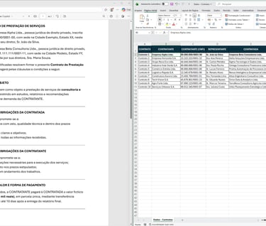 A solução é ideal para contratos, relatórios financeiros, demonstrativos, extratos e outros documentos recorrentes, garantindo padronização, velocidade e consistência nos resultados. Todo o processo ocorre de forma autônoma, com regras bem definidas, validações e possibilidade de integração com planilhas, bancos de dados, sistemas internos ou dashboards.